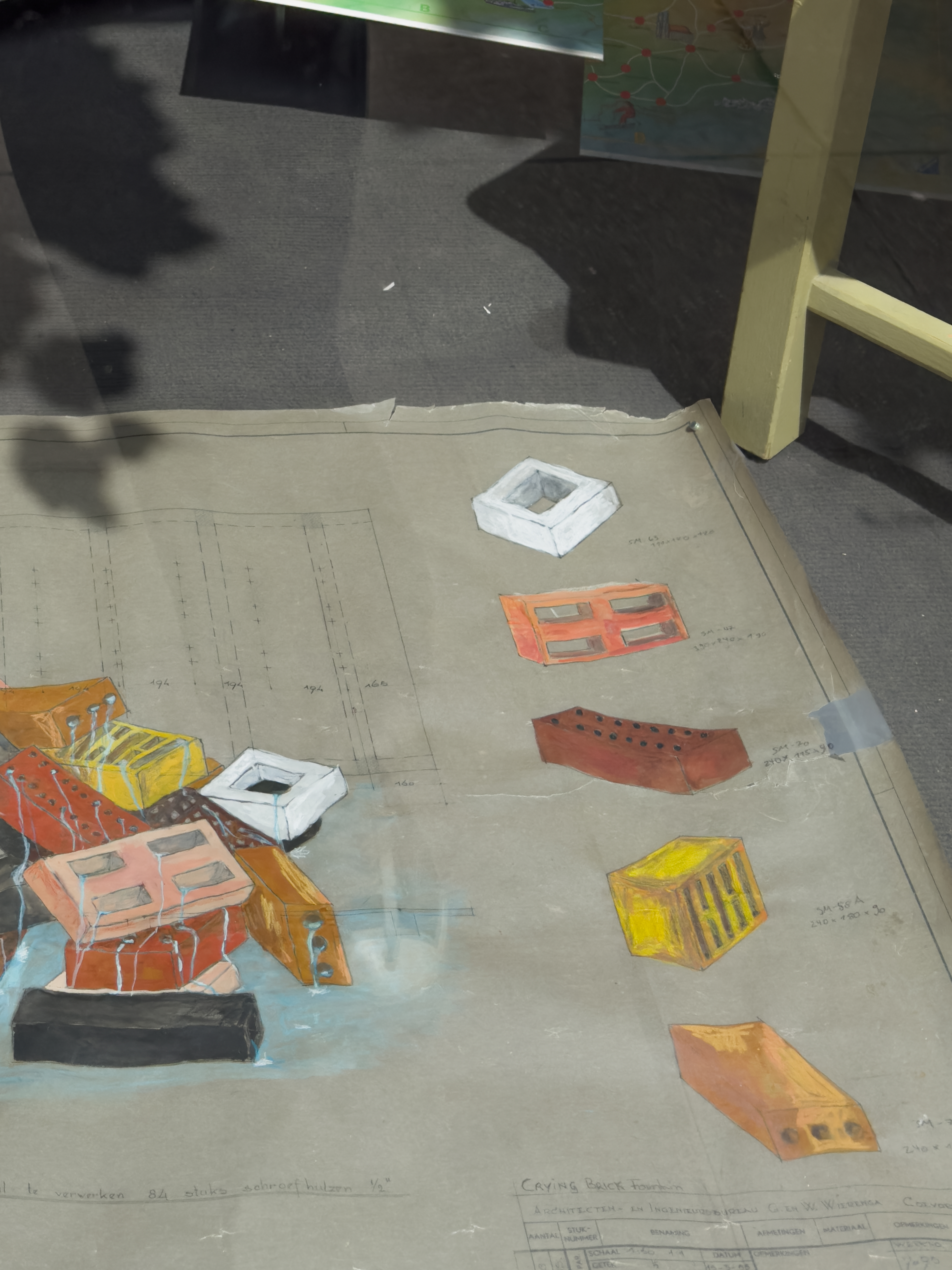 Crying Brick Fountain, Zeichnung auf technischer Zeichnung